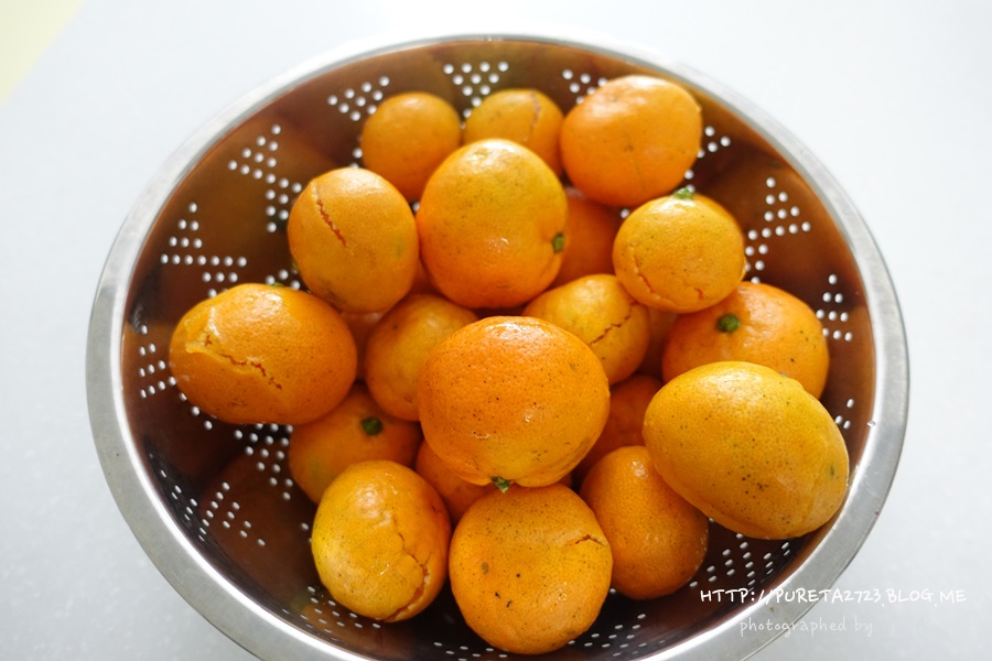 귤을 포개서 넣지 말고 듬성듬성 넣어줍니다