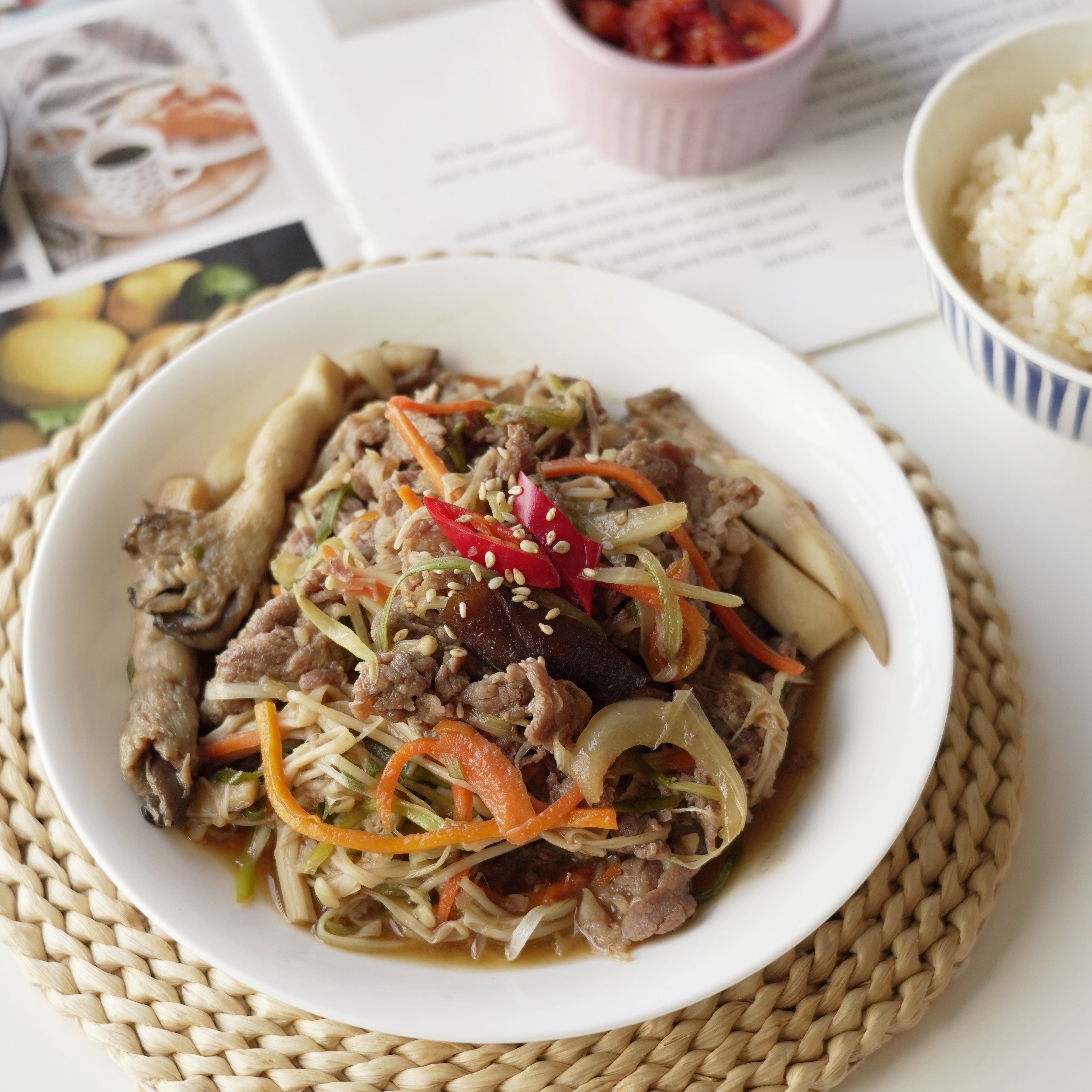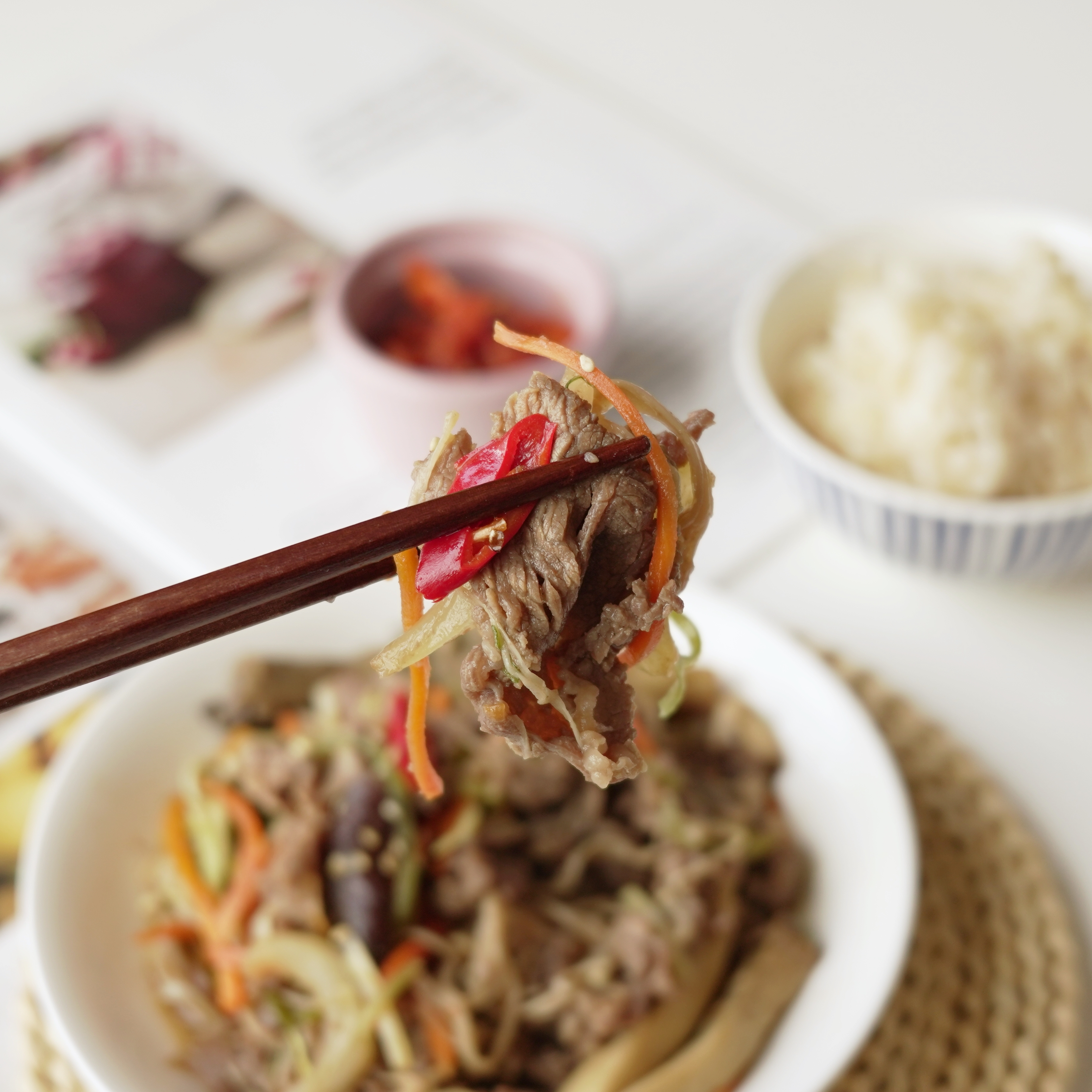 버섯과 채소에도 소불고기 양념이 잘 배어들어 더욱 좋아요